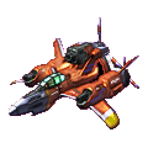 This ship has faster movement and a more forward focused shot in comparison to its counterpart, the Dio Spirossi. Additional ship types change movement speed, how Options are locked, shot types, and bomb types.