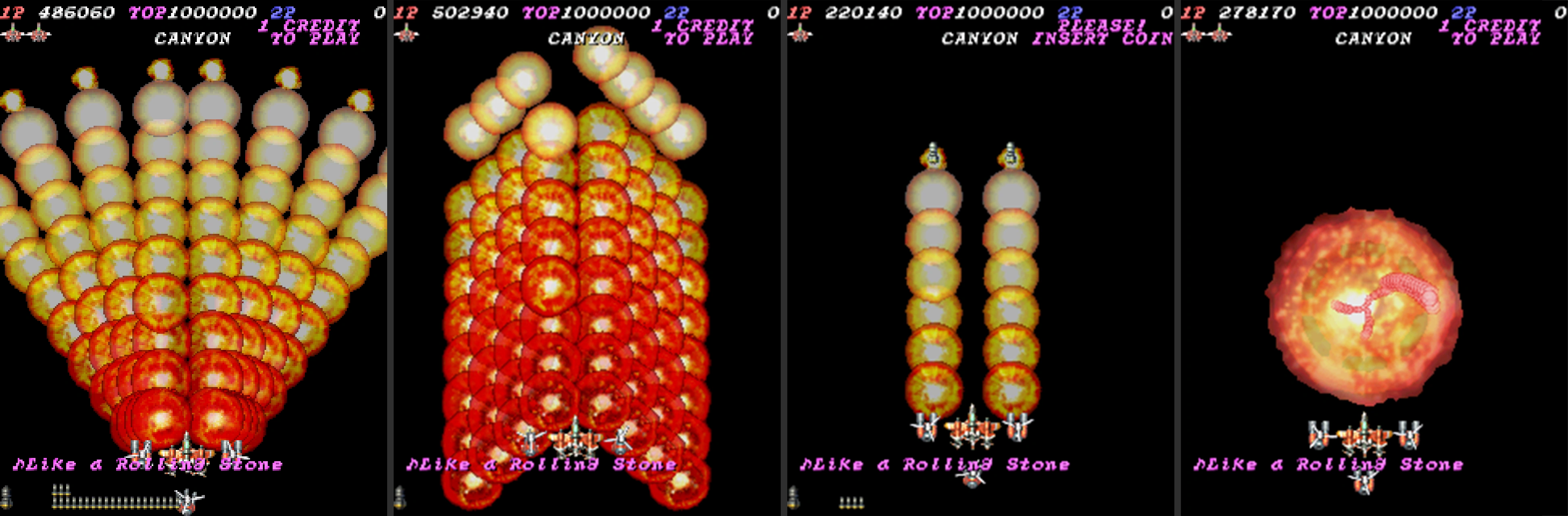 Bombs are a secondary weapon, alongside the Main Shot and Options. They are capable of dealing very high amounts of damage, can cancel incoming bullets, and can cover huge areas. Bombs are a very powerful survival tool - though for this purpose they are generally outclassed by the Hadou Gun.